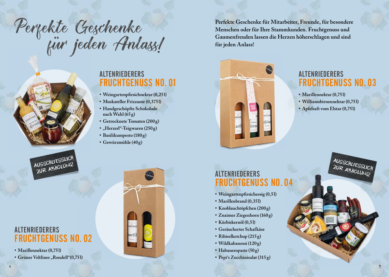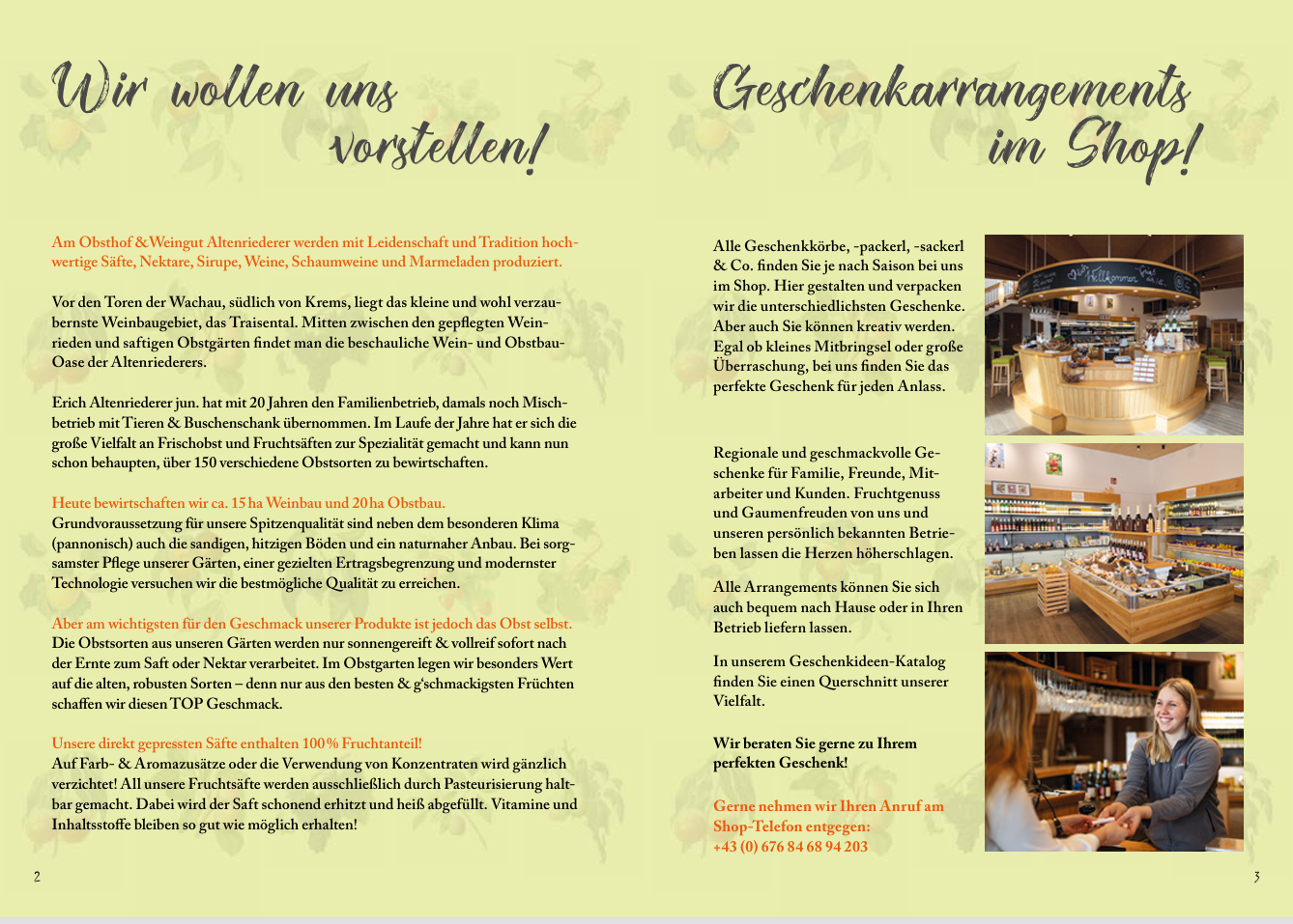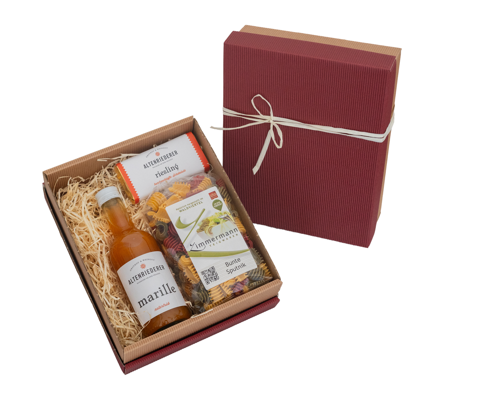 Alle Geschenkkörbe, -packerl, -sackerl & Co. ‚nden Sie je nach Saison bei uns im Shop. Hier gestalten und verpacken wir die unterschiedlichsten Geschenke. Aber auch Sie können kreativ werden. Egal ob kleines Mitbringsel oder große Überraschung, bei uns ‚nden Sie das perfekte Geschenk für jeden Anlass.