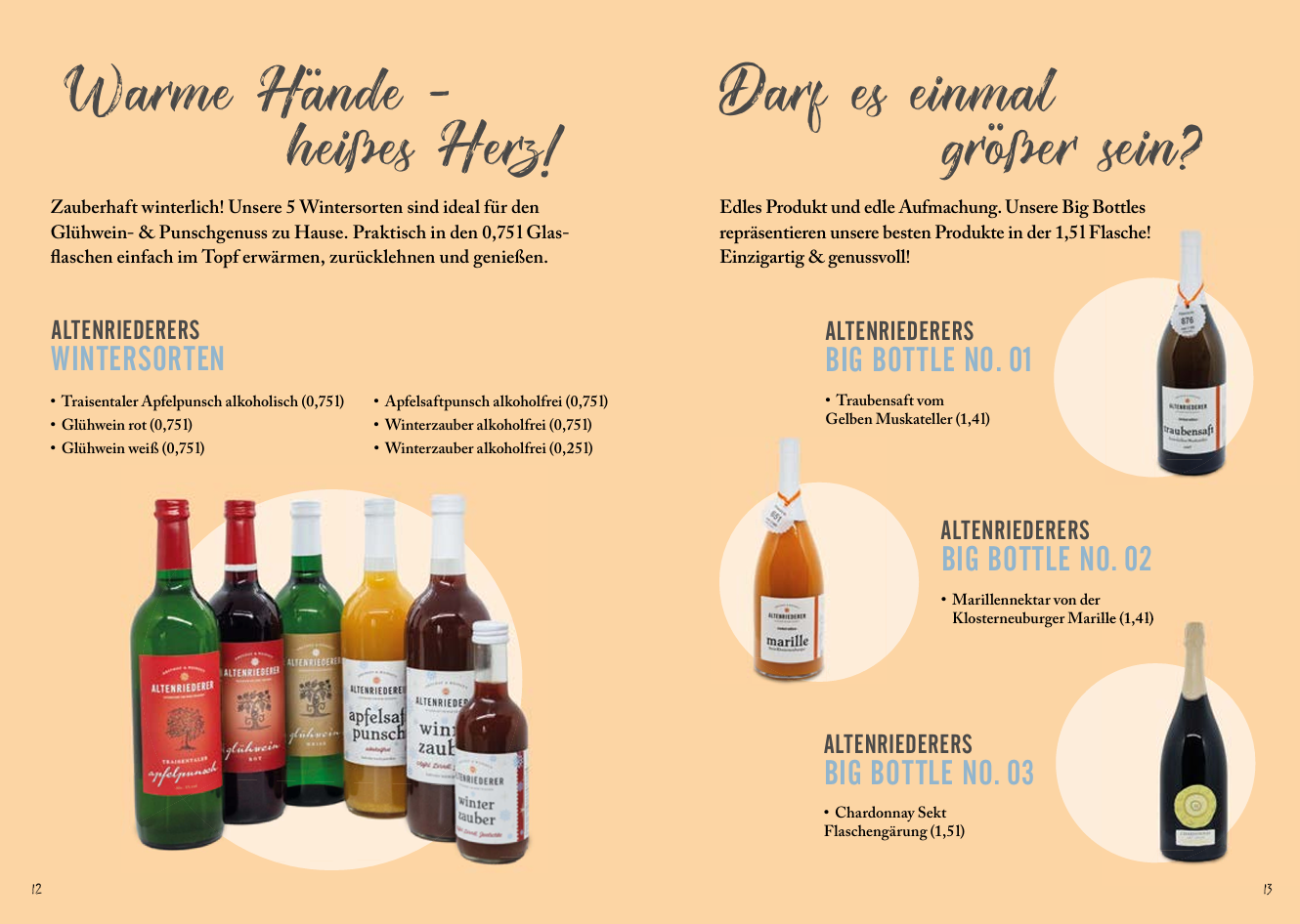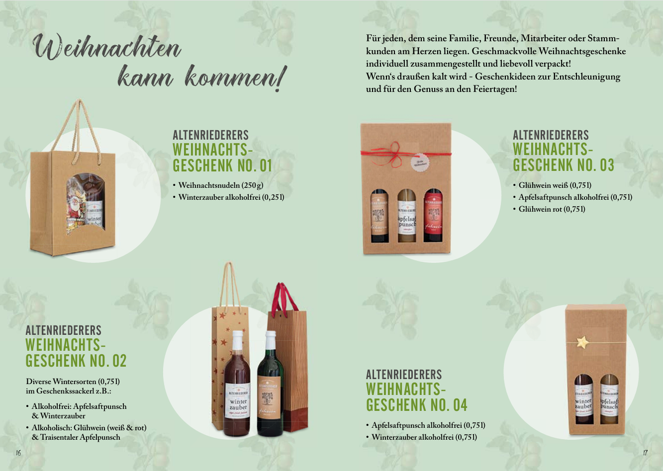 - Alkoholisch: Glühwein (weiß & rot) & Traisemtaler Apfelpunsch