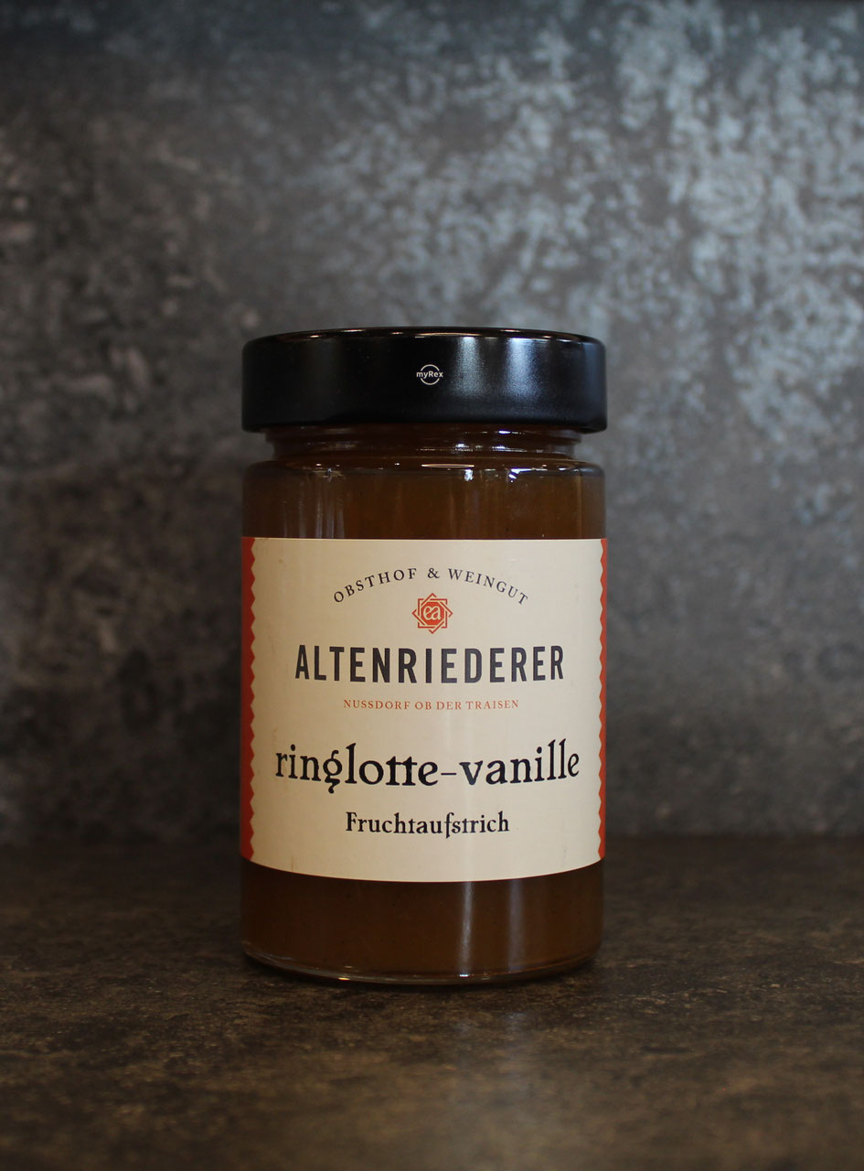 Ringlotten feinst passiert verfeinert mit Vanille als Fruchtaufstrich.